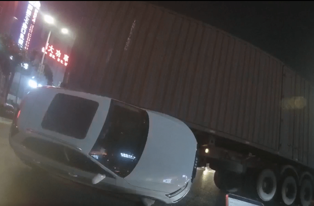 经过问询两边驾驶员及检查行车记录仪视频,民警得知,事发时,大卡车在转弯车道掉头,小轿车在直行车道左转弯,正好处于大卡车视野盲区之内,两车在路口处产生磕碰,小轿车情不自禁被大卡车拖着转弯,最终整车侧翻像“千斤顶”相同将大卡车尾部支起。