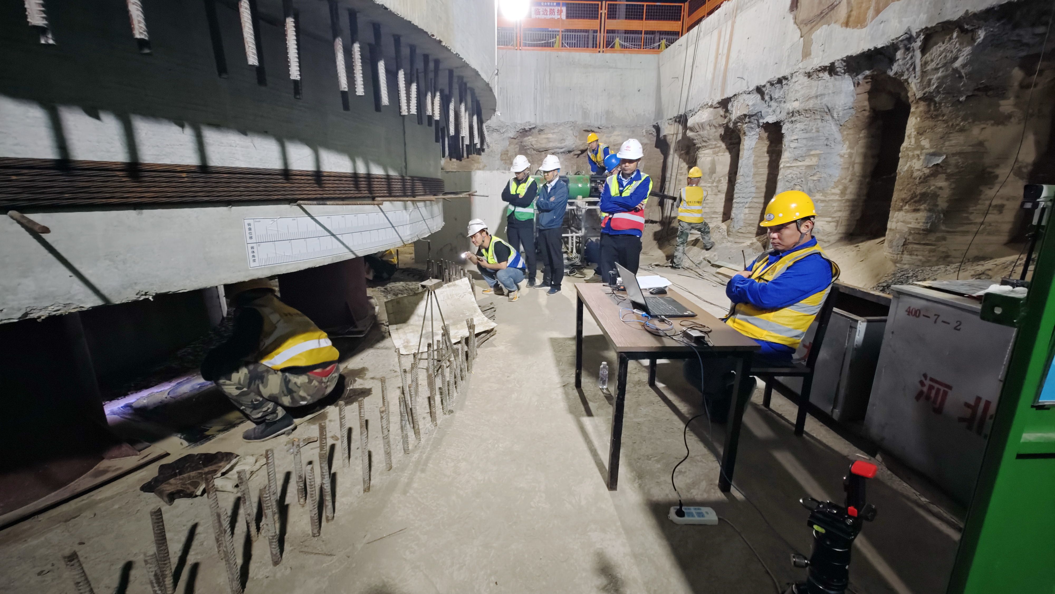 承担建设的中铁十四局项目经理介绍,本次转体施工的为上跨石德铁路2号分离立交,左、右幅转体角度分别为42°和36°,面对转体段曲线米带来的横向偏心,转体支座中心线偏移等问题,现场技术人员分工明确、各司其职,实时监控和调整转体速度及桥梁姿态,实现了万吨桥梁顺利转体。