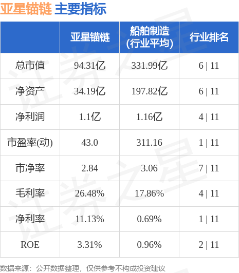 证券之星估值剖析提示亚星锚链盈余才能平平,未来营收成长性较差。归纳基本面各维度看,股价合理。更多